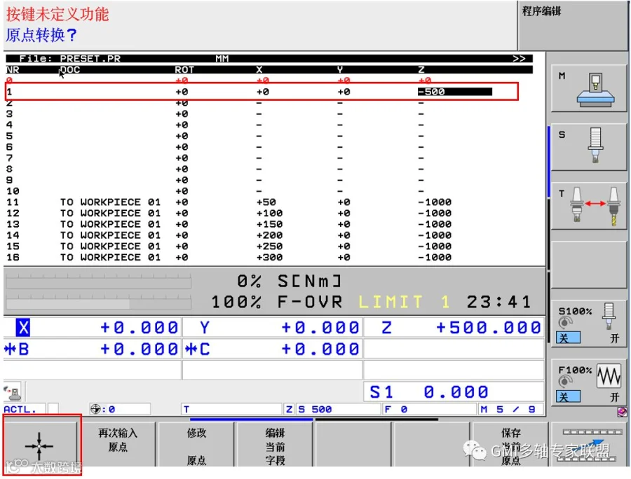 4.在量块上方设定1号坐标系的C轴为0然后XYZ都为0。