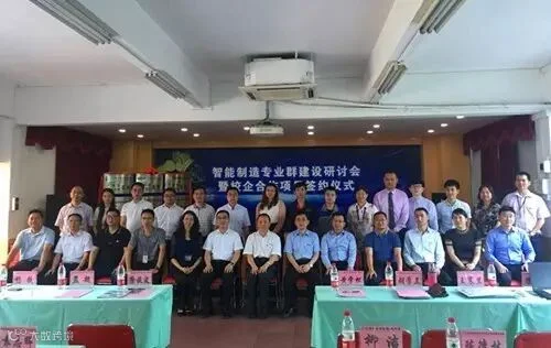 5月10日,徐旋波所长、智能装备科信部陈德林经理应邀参加了广州市轻工职业学校(以下简称市轻工)举办的“智能制造专业群建设研讨会暨校企合作项目签约仪式”。出席会议的还有巨轮智能装备股份有限公司(以下简称巨轮公司)孟超总经理、广州市教育研究院柳洁女士以及各院校和科技行业相关代表。