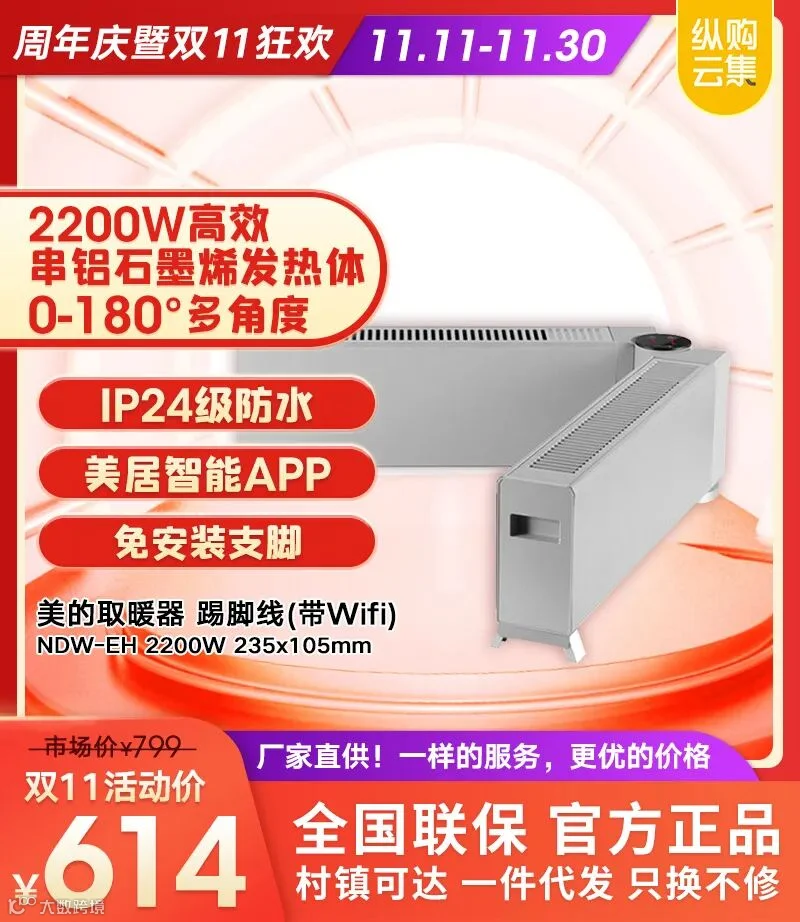美的 取暖器 踢脚线(带Wifi)
