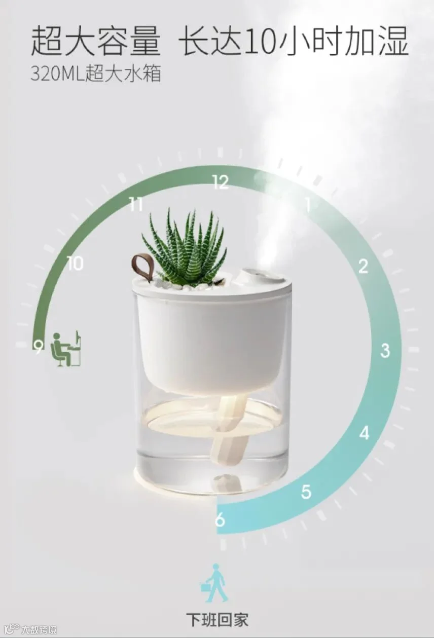 • 320ml超大水箱,长达10小时加湿 •