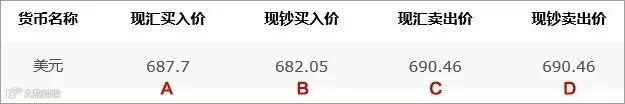 2.将外币现汇换成人民币,则用现汇买入价A,可兑换687.7元人民币。