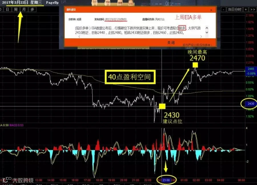 上周祺弘金牌分析师郭政轩老师,在数据公布出来30分钟之后,稳健的给出了买涨多单的建议,随后的3个小时油价累计上涨达40点,要知道一带一路交易所原油只要盈利80点相当于本金翻一番!也就是说40点的盈利相当于50%获利空间,即使获利一半也能有不小的收获了!