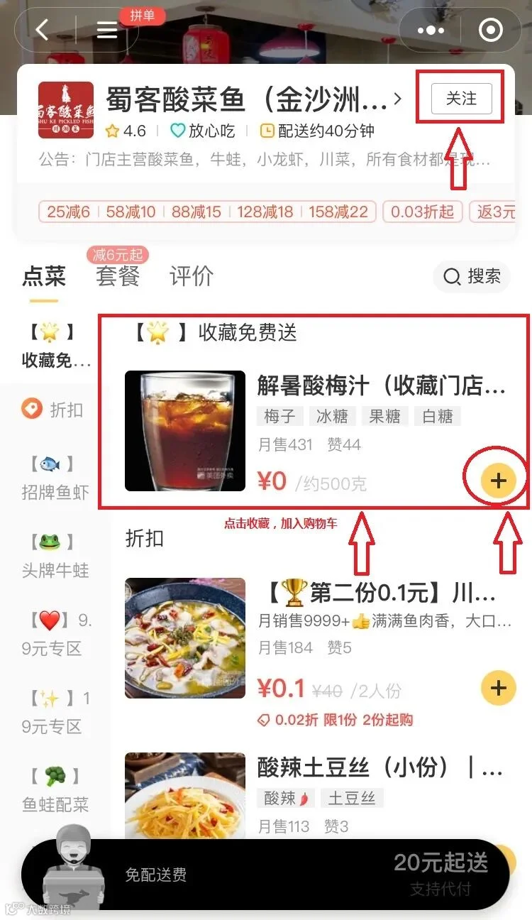 ②关注+收藏门店 解暑酸梅汁加入购物车,限点一份哦