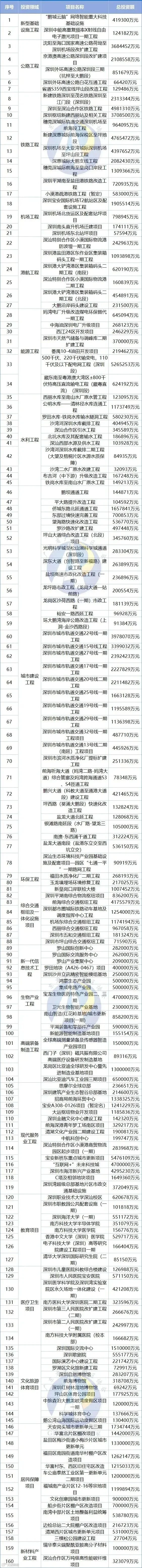 按分类看:广东省基础设施工程年度计划投资6391亿元,约为全部项目年度计划投资的61%;产业工程年度计划投资2584亿元,约为全部项目年度计划投资的25%;民生保障工程年度计划投资1525亿元,约为全部项目年度计划投资的14%。