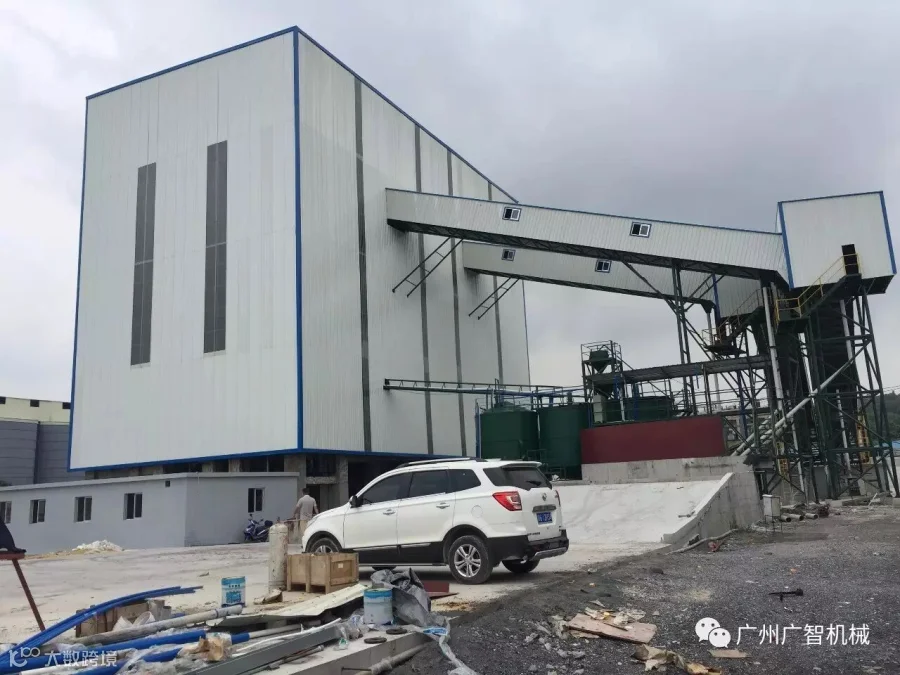 广智作品又一家高效、节能、环保、智能的混凝土企业落成。这是位于广州市白云区江高镇的广东基础新成混凝土有限公司。无论是美观的外墙封装,还是封装内部坚固、扎实、智能、高效的的生产线建造,都是由我们广州市广智机械设备有限公司一手打造完成。还使用了我们公司自主研发的翻斗式砂石分离机系统、比重法智能污水调配系统,真正践实了混凝土企业绿色环保,污水零排放。