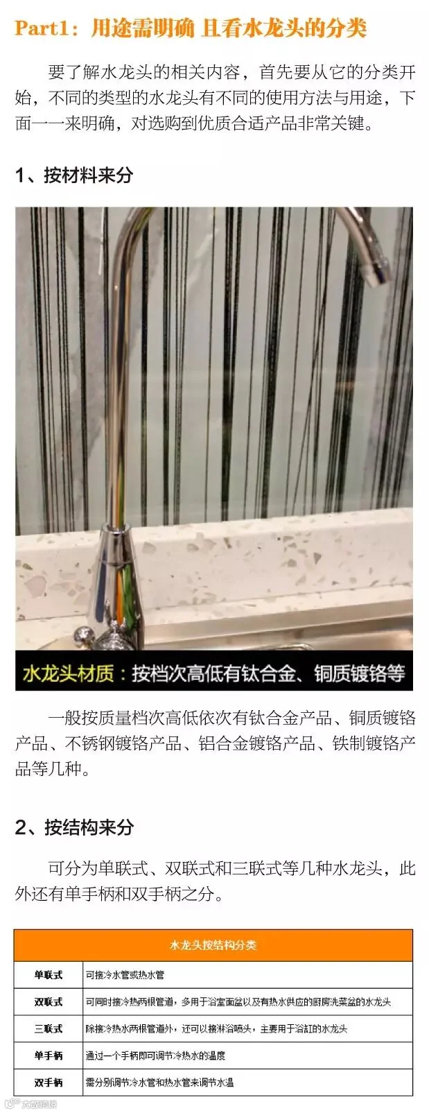 水龙头是现代家居用水的必需品,它用来控制水流大小的开关,不仅能给我们的日常用水带来极大的便利,而且还有节水的功效。下面就让我来给大家介绍一下水龙头的选购、安装以及养护攻略。