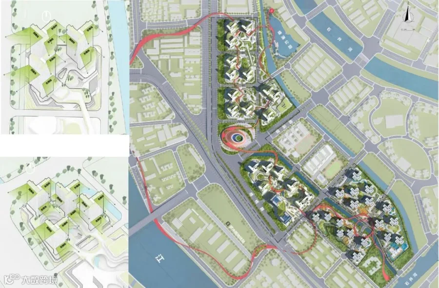 根据项目周边景观、交通枢纽、产业等资源情况,以高线公园的形式进行串联,形成区域生活大回环。