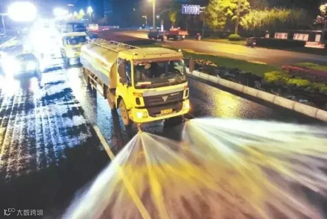 租的公寓外路过一辆洒水车