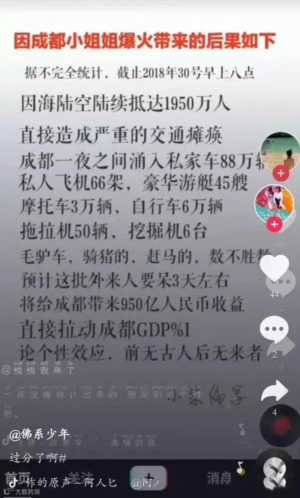 虽然这些数字可能具有一定的夸张性,但就其的轰动效果来说还是有目共睹的。到底小姐姐说了什么,竟让成都的交通差点瘫痪?
