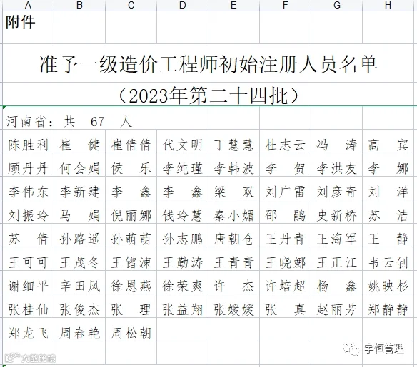 附件:准予一级造价工程师初始注册人员名单(2023年第二十四批)