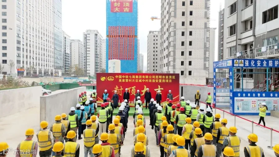 2025 年 12 月 3 日,随着最后一方混凝土精准浇筑到位,由名扬宇恒集团监理的吴家营村片区城中村改造安置房建设项目最后一栋楼顺利封顶,标志着整个项目 14 栋安置房实现全面封顶目标。从 2024 年 9 月开工建设到主体结构全面落成,名扬宇恒集团以 “专业专一” 的服务理念,为昆明民生工程交出了阶段性优异答卷。
