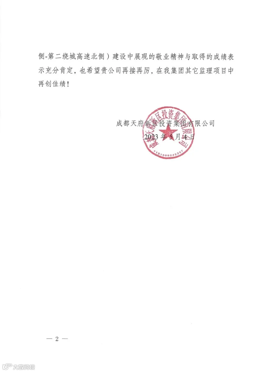 导读:近日,由名扬监理的大林500kV变电站配套电力通道项目(桐子路.科学城中路南侧、 永兴服务区南侧.第二绕城高速北侧),基础设施及公建配套设施项目 (二期)-科学城南路受到业主单位天府新区投资集团有限公