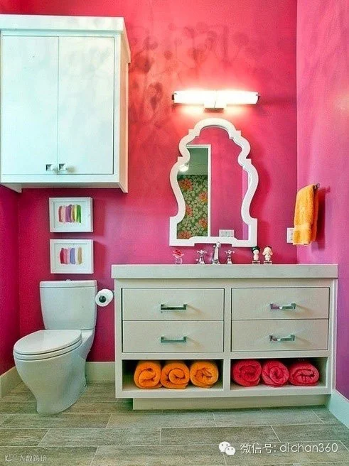 精致的浴室镜挂在粉红色的背景墙上,曼妙的身姿是那样的动人,粉红色的甜美是小浴室的法宝,粉嫩的颜色没有一个人不为之心动。