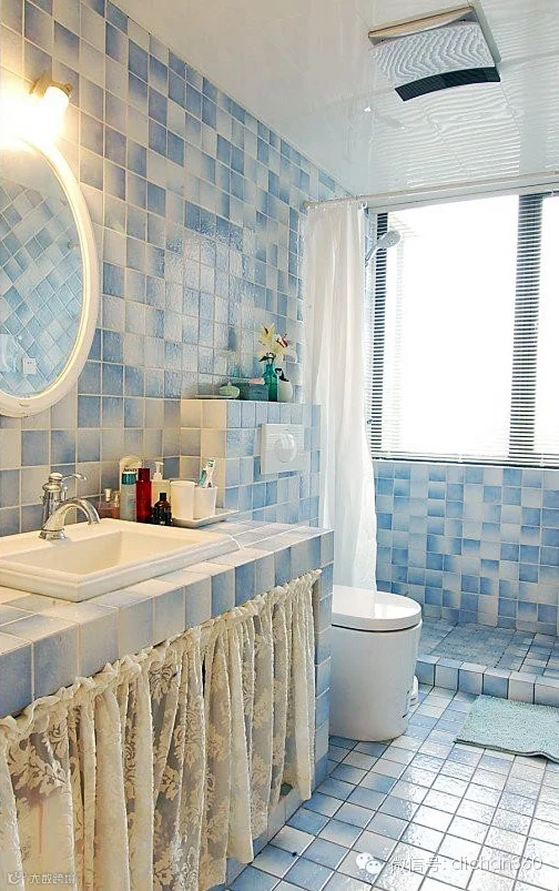 蓝白色渐变的瓷砖铺满整个空间,仿佛带你走进了海洋世界中.