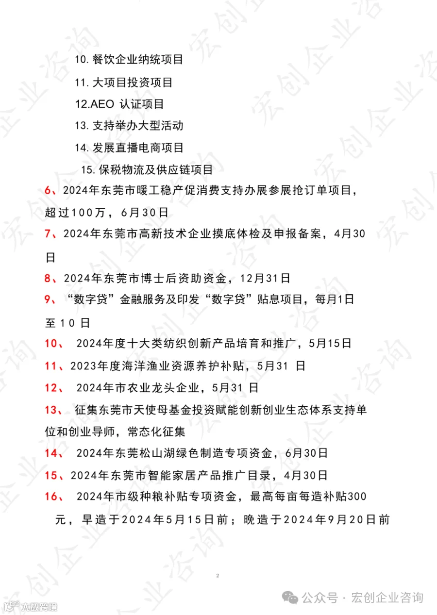 20240425期广东省近期可申报项目汇总(4月) 宏创企业咨询