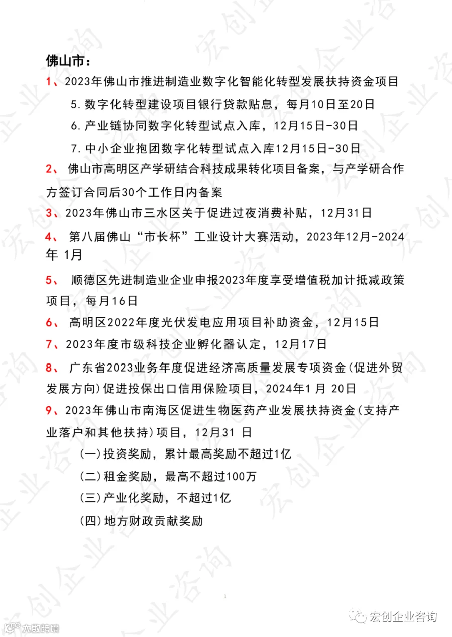 广东省近期可申报项目汇总 宏创企业咨询