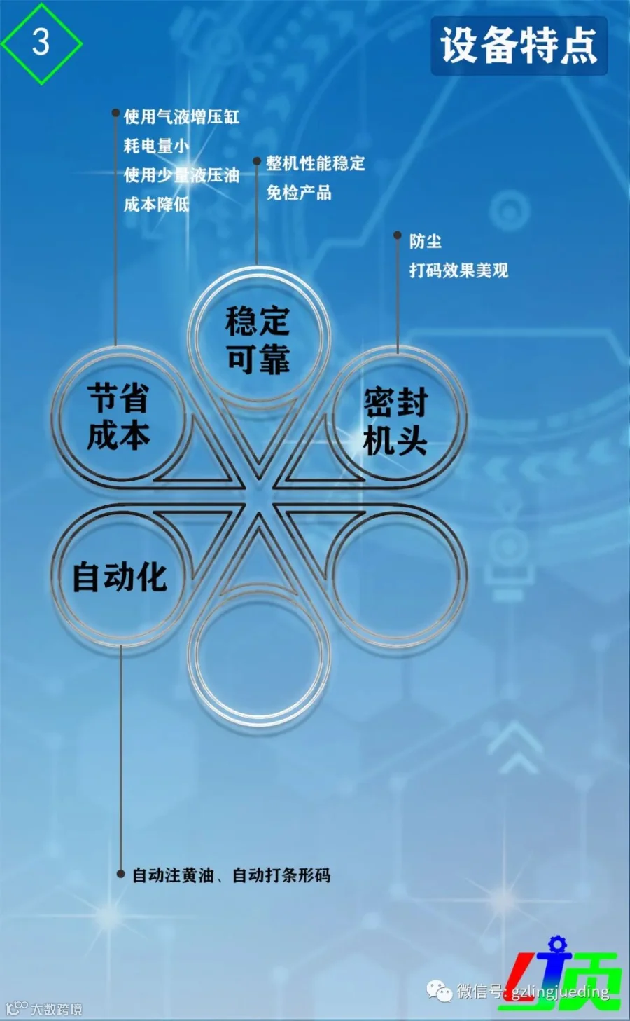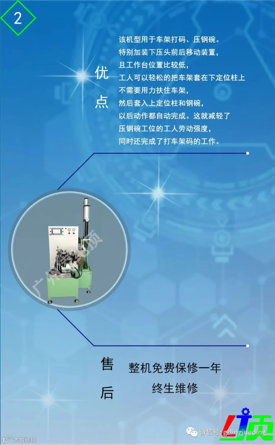 三位一体机(气液增压缸)也同样具有车架车管打码、自动注黄油、压钢碗、条码打印等功能。它与三位一体机(油缸)的区别在于:三位一体机(气液增压缸)压钢碗的动力来源于气液增压缸,三位一体机(油缸)压钢碗的动力来源于油缸。