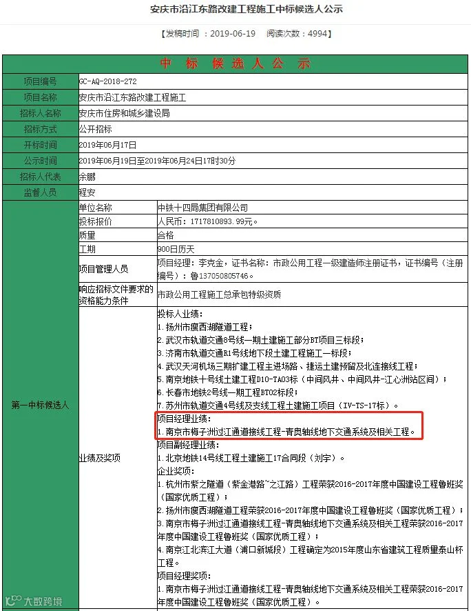 来源:安庆市公共资源交易监督管理局、路桥网