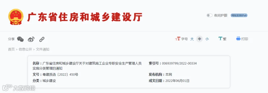 广东省住房和城乡建设厅关于对建筑施工企业专职安全生产管理人员实施分类管理的通知