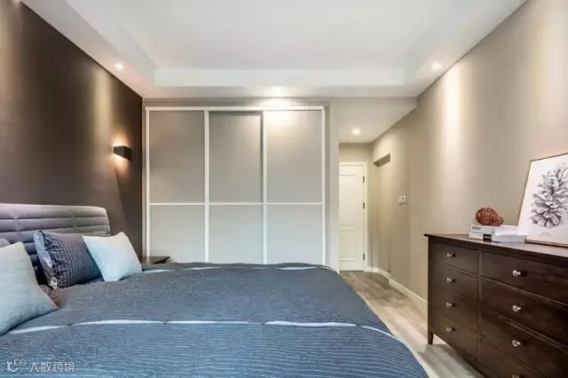 ▲主卧整体设计色调偏深,营造一种安静,温馨利于睡眠的空间。床头背景与沙发背景的设计手法和理念一致,增加空间层次感同时又能稳住整个卧室的色调,在这样的卧室里,卸掉一天的忙绿,进入熟睡的梦乡。