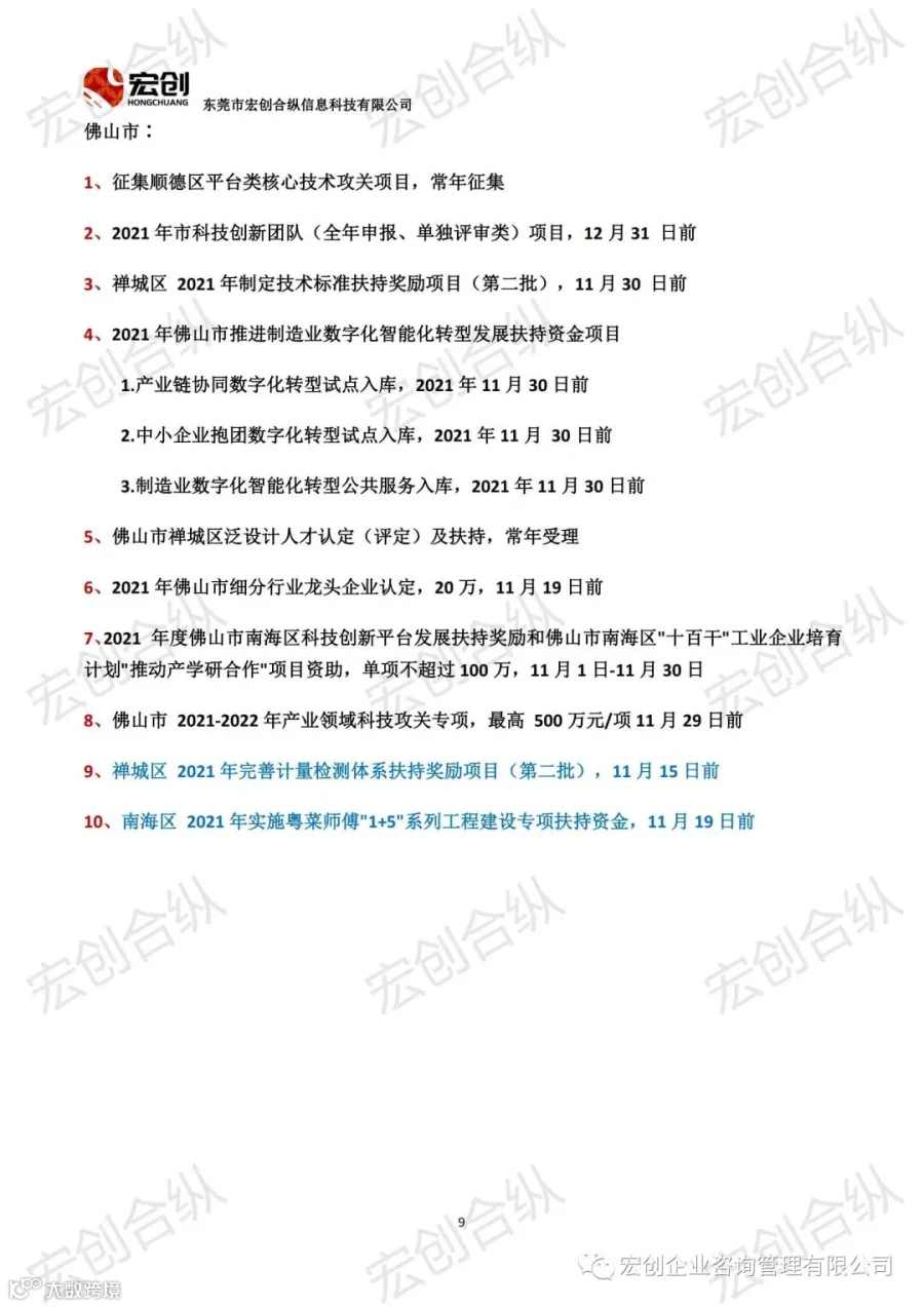20211112期广东省近期可申报项目汇总(11月) 宏创企业咨询