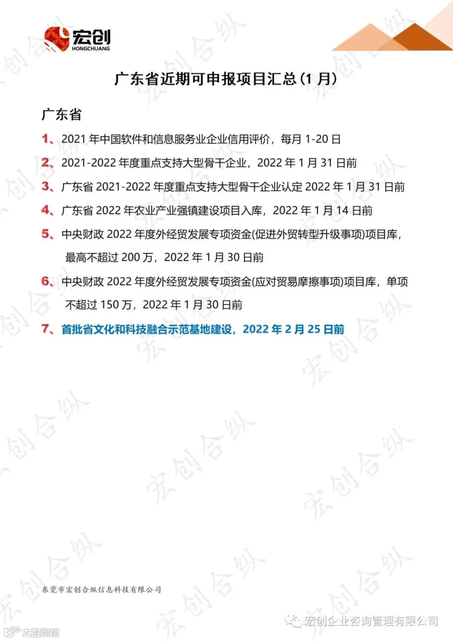 20220106期广东省近期可申报项目汇总(1月)