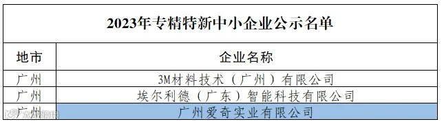 日前,广东省工业和信息化厅发布了《广东省工业和信息化厅关于公布2023年专精特新中小企业和2020年到期复核通过企业名单的通告》,广州爱奇实业有限公司上榜,获“2023年专精特新中小企业”认定!