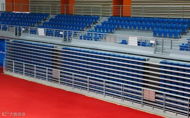 每层设一个箱形踏步(与看台台面制作工艺相同),采用铝合金封边装饰,具有耐磨,耐脏,清洗方便等优点。