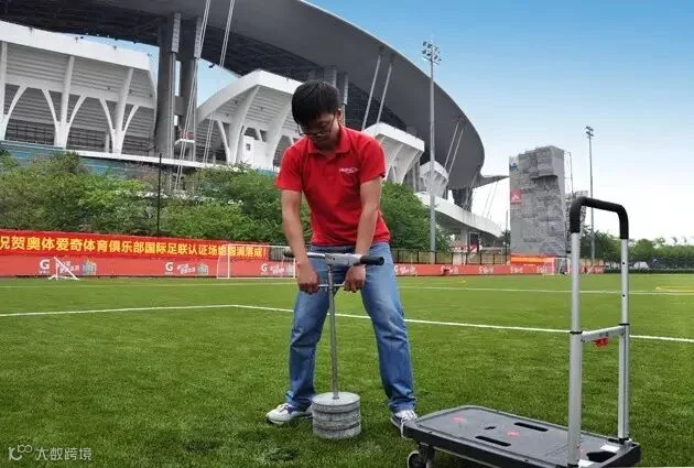 一场精彩的足球赛,大家踢的有来有回,攻守转换频繁,球员避免不了大量的转身动作,转动力矩的测试就是旨在衡量运动员在进行转身或涉及转动的情况下,来自地面是否能提供足够的摩擦力。力矩,是在物理学中作用力使物体绕着轴或者支点转动的趋向,简单来说是评价物体发生转动的容难易程度的一项物理指标,单位一般为牛顿-米(Nm),同样的,人造草场地的转动力矩需要在一个合理的范围内,过高,球员转身困难,过低,严重点可能造成球员在原地旋转,根本停不下来。