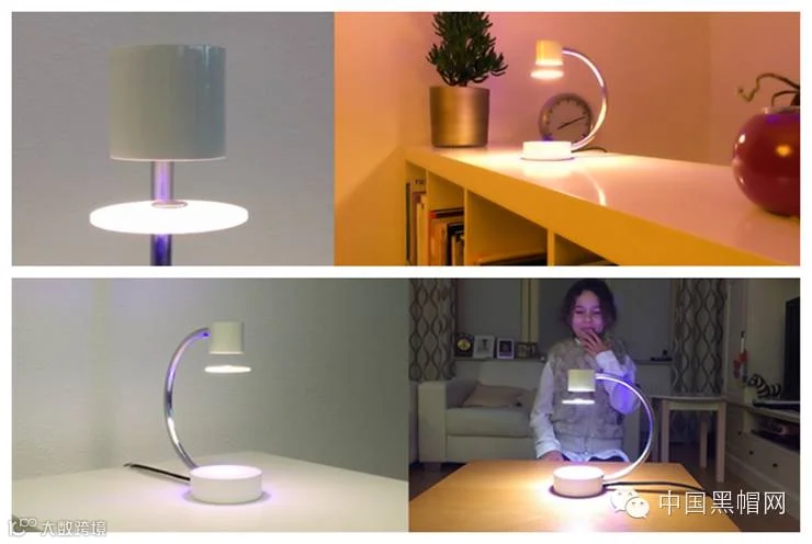 磁悬浮:利用磁性物质的力量,将含有电磁感应圈的永磁铁悬浮起来。LUNALUXX台灯顶部的灯罩内含有一个电磁感应圈,中间的飞碟上安装了一块永磁铁。电流通过灯罩的电磁感应圈,由特殊的开关控制, 并以每秒1000次的速度测量和改变电流,那么电流就会影响飞碟中永磁铁的吸引力,从而让飞碟一直悬浮在半空中。