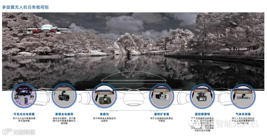 T60的机载功能是一个最大的优势,如红外热成像仪,气体采样器,急救包,喊话器等,在地震救灾、防火防爆、交通堵塞中T60的载荷功能都能最快最准的把你需要的信息采集回来以及物资发送出去。