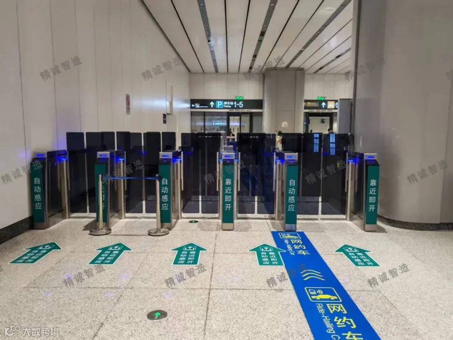 精诚智造作为该线路重要合作伙伴之一,在广州白云站核心换乘大厅的关键出口位置,部署了AB速通门闸机,该设备精准管控通往西广场、东广场、西侧网约车通道、东侧网约车通道四大外部区域的出口。