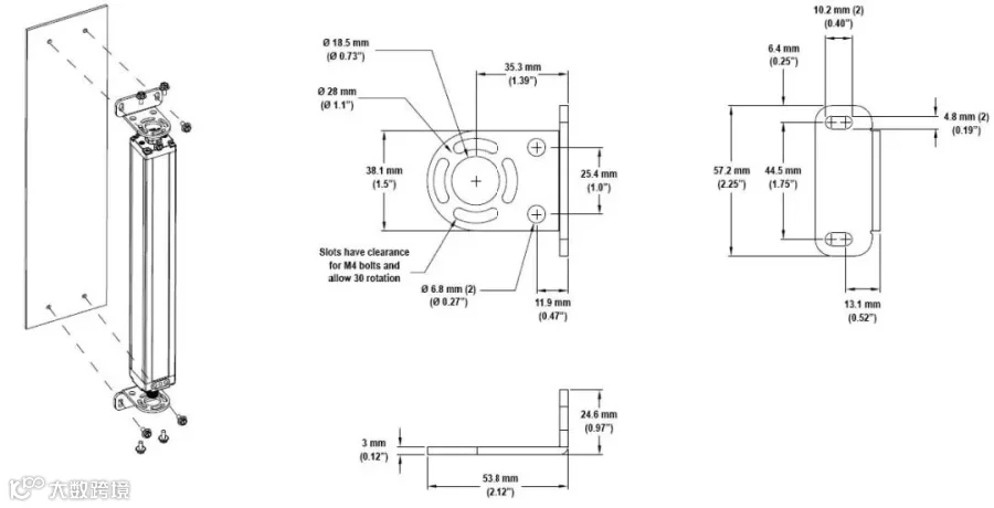 T型螺母安装,同时保留标准两件式Mini-Array的端部安装孔。