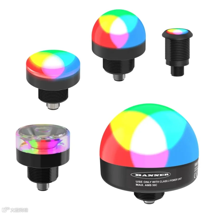可编程的多色LED指示灯提供了大胆、明亮的状态指示,仅三个输入就提供了多达14种标准颜色的选择。与Pro Editor兼容的模型可以使用Banner的直观软件进行编程,增加各种颜色和动画选项。带有IO-Link或PICK-IQ通信的型号提供了动态控制和数以百万计的自定义颜色选项。