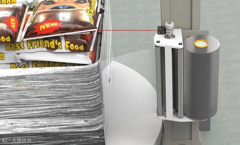当瓶子从卸垛机中取出时,用扫臂将瓶子逐层从托盘上扫下来。在将另一层扫到传送带上之前,要确保中转区的瓶子继续向前移动;