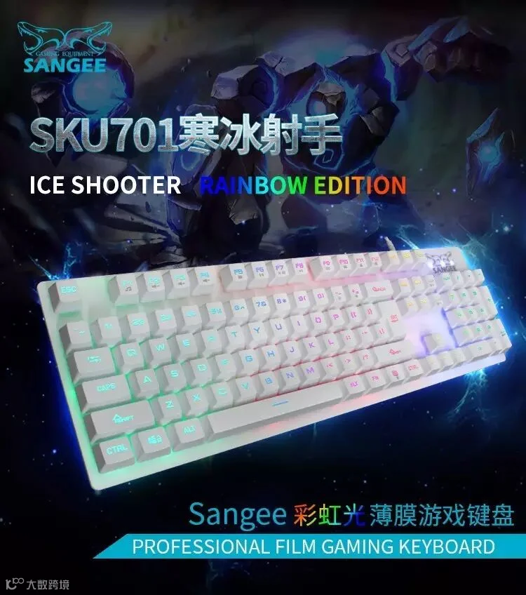 在机械键盘日渐崛起的现在,大家似乎忘记了,有一种薄膜键盘又被称之为“游戏键盘”。如今人们一味的追求机械键盘,但世界上没有什么东西是适合所有人的,对薄膜键盘情有独钟的人也是不在少数的,况且机械键盘价格普遍都偏贵,而一把薄膜的游戏键盘价格往往比机械键盘要便宜好多,三巨推出的【SKU701寒冰射手】是一款集外观炫酷、手感舒适、价格亲民的薄膜机械手感游戏键盘。