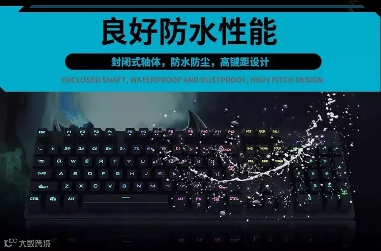 SKU701采用火山口架构,防水防尘,而且我们高键距设计,按键凸出可以很好的防止水流渗入键盘内部