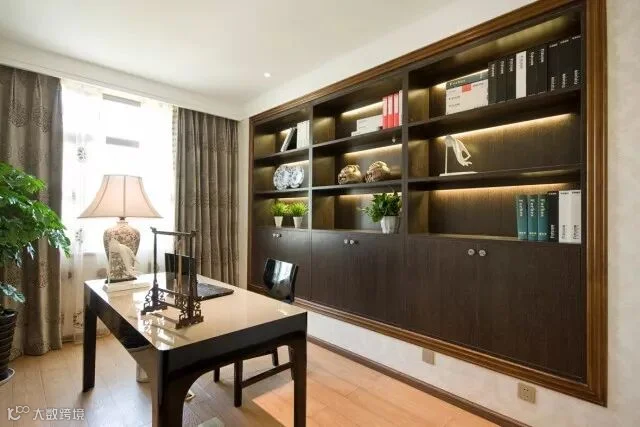 中式家具因为色彩都较凝重,因而如果采光不好,很容易流于昏暗。所以,书房的采光一定要好。但是如果主人采用的是现代商品房,窗子无法大开,那就需要内置充足灯光。