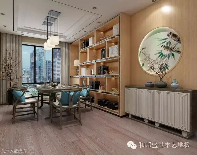和邦盛世明·雅系列地板,取神于明朝戏曲优雅细腻的风格,取形于明式家具古朴雅致之体态,取法于大明绘画之用色,始臻其妙。镂刻之间,勾勒精细,纵放之中寓法度,刚柔相济,韵味浓郁,匠心独运。