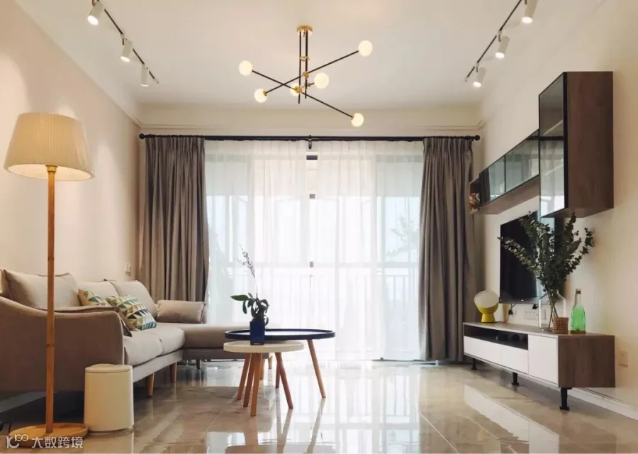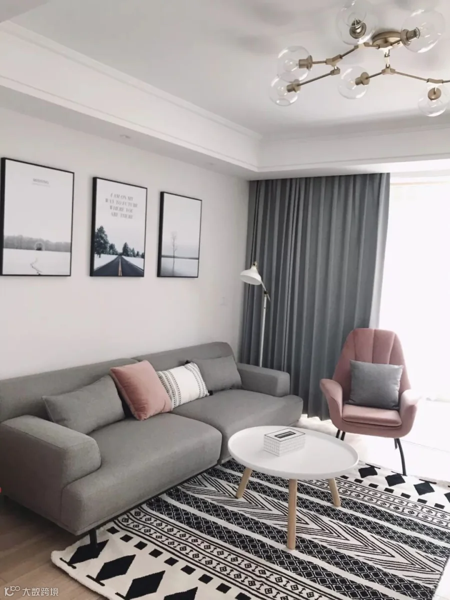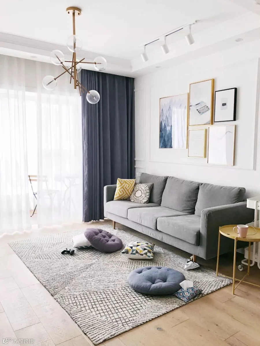 中度灰色的窗帘,运用范围就比较大了,对于简约、北欧等年轻人喜欢的客厅搭配中,都是非常和谐大方的设计组合。