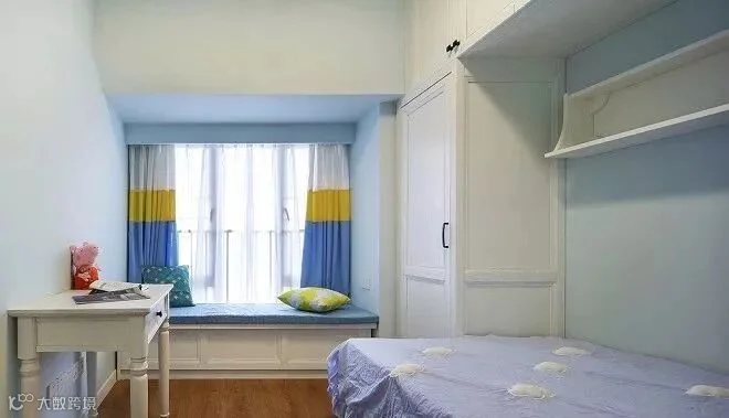 儿童房在整体柜下放床,合理安排空间,简单放张书桌,满足日常学习需求。