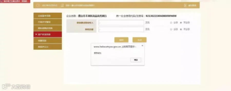 提示“保存成功”后,点击“确定”
