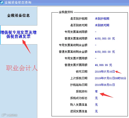 通过上图,我们看到锁死日期已经变成了8月16日,报税资料也变成了“无”,这就说明开票软件已经清卡成功。