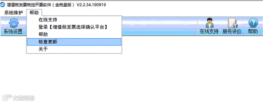 打开增值税发票开票软件(税务UKEY版),点击右上角菜单——检查更新