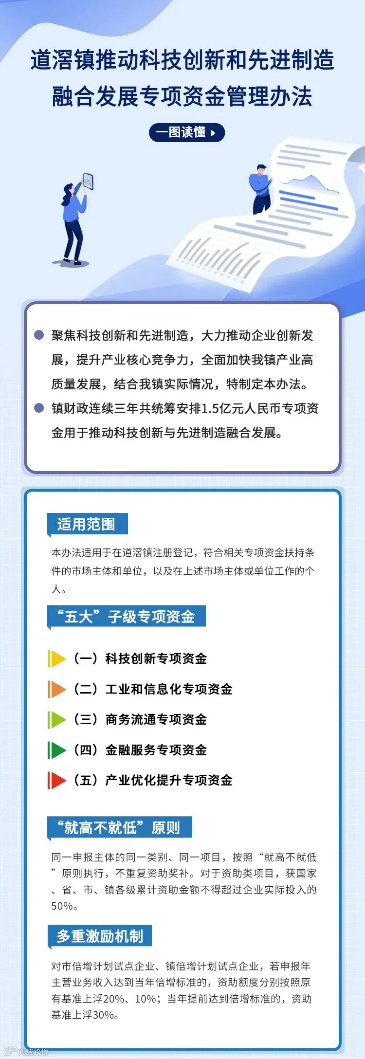 日前,道滘镇正式印发《道滘镇推动科技创新和先进制造融合发展专项资金管理办法》,计划连续三年共安排 1.5 亿元人民币专项资金用于推动科技创新与先进制造融合发展。
