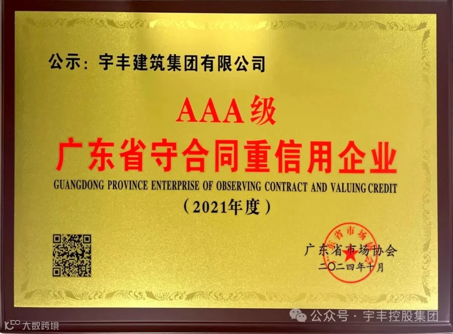 导读:热烈祝贺宇丰建筑集团有限公司荣获“广东省守合同重信用企业AAA级”。