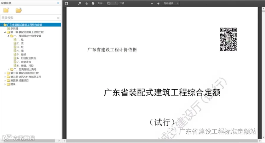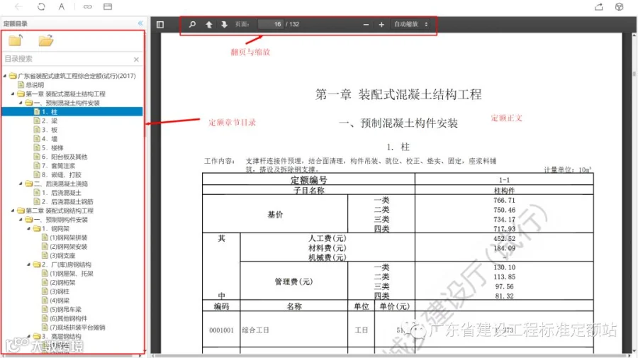 ,“广东省装配式建筑综合定额”,进入定额在线使用界面。