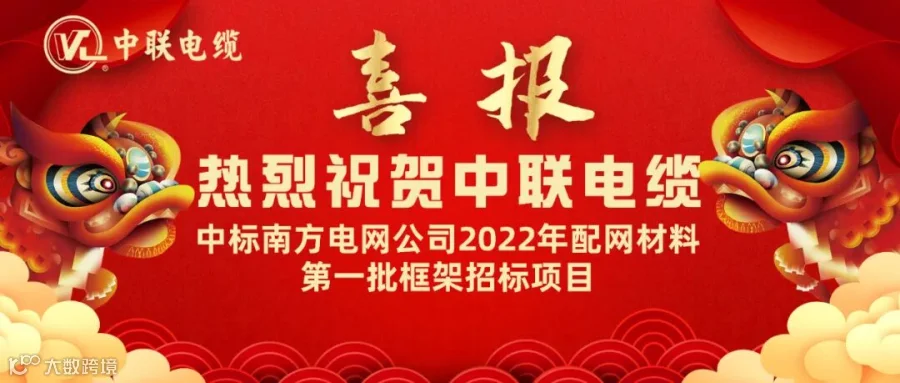 8月15日,广东中联电缆集团有限公司收到中国南方电网中标通知书,公司喜中南方电网公司2022年配网材料第一批框架招标项目——10kV 铜芯交联聚乙烯绝缘电力电缆(防蚁阻燃型)、低压交流电力电缆(阻燃型)、绝缘架空导线,中标金额合计达2.75亿元。