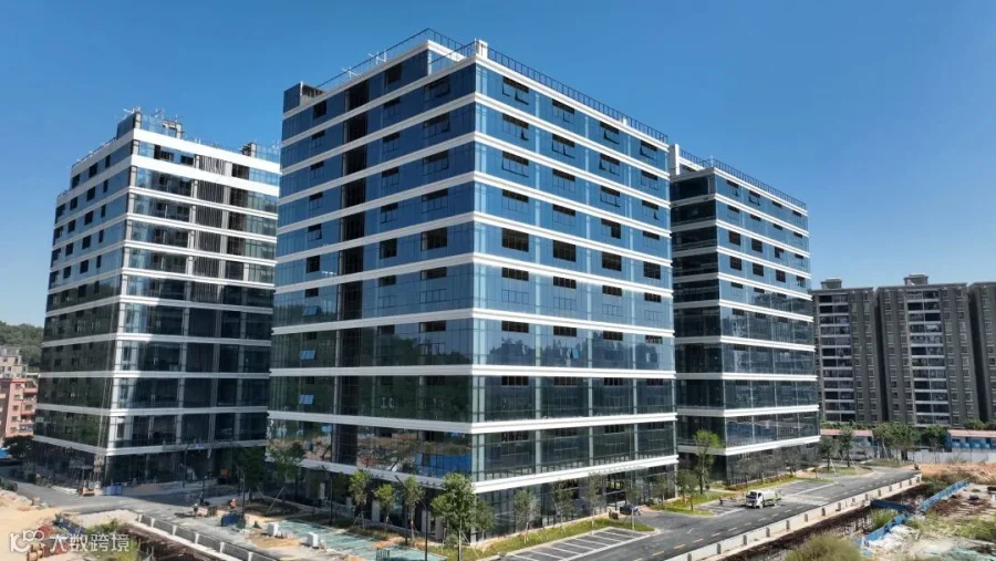 工业大厦外观采用玻璃幕墙覆盖,媲美写字楼级别的产业用房。目前一期四栋工业大厦幕墙安装工作接近尾声。