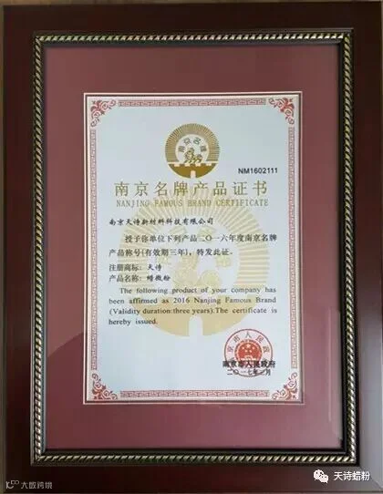 2017年3月,南京市人民政府文件宁政发【2017】52号文:《市政府关于公布2016年度南京名牌的通知》公布了2016年度包含我公司“天诗”品牌在内的南京市116个南京名牌产品,这标志着我公司的品牌建设之路又往前迈进了一大步。